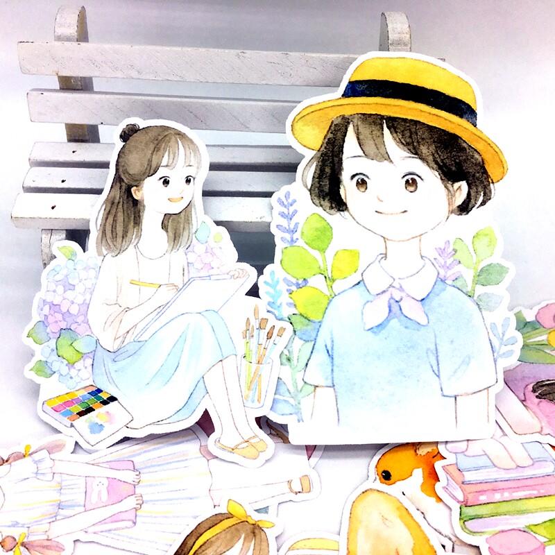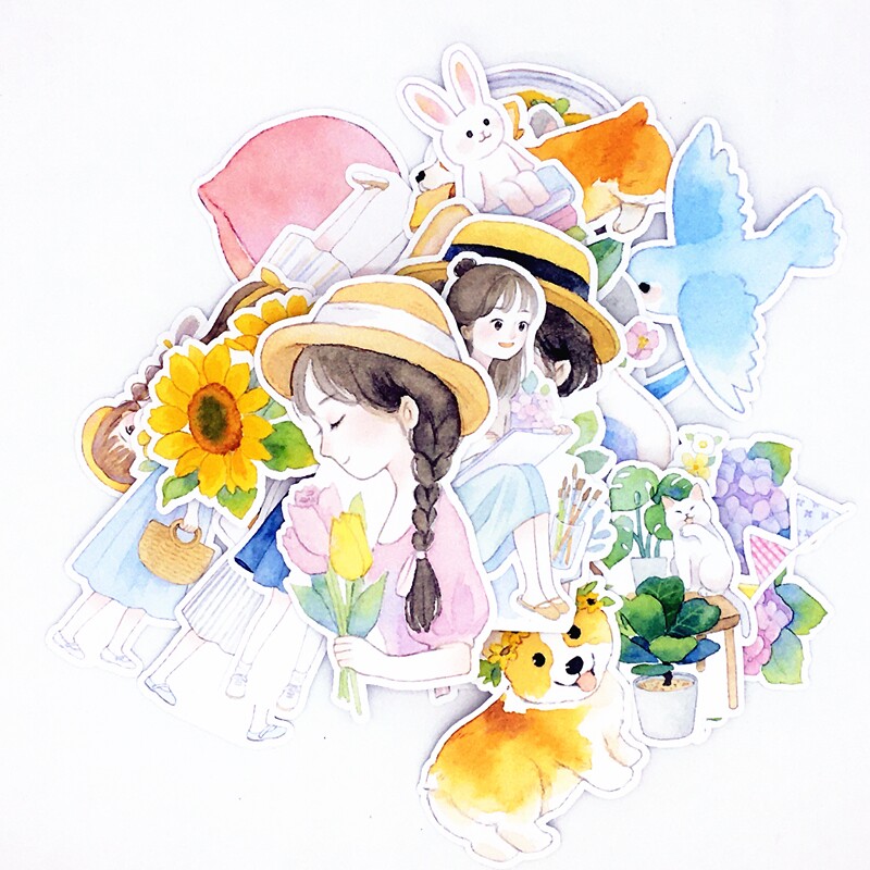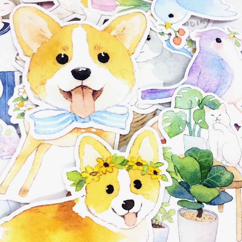 Pocket account sticker fairy tale style watercolor hand-painted hand account girly heart small animal fantasy illustration puppy bunny