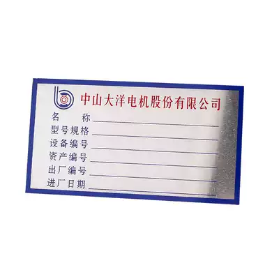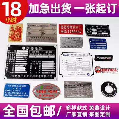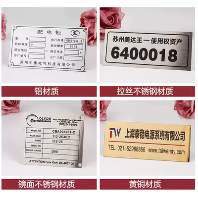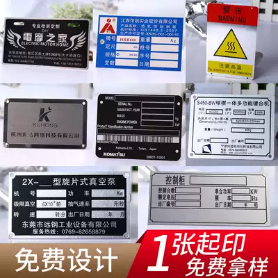 Manufacturer aluminum brand custom motor equipment corrosion nameplate custom logo stainless steel metal aluminum sign copper production