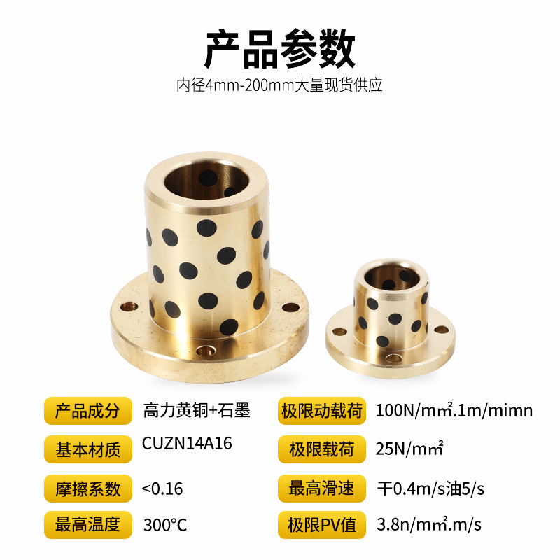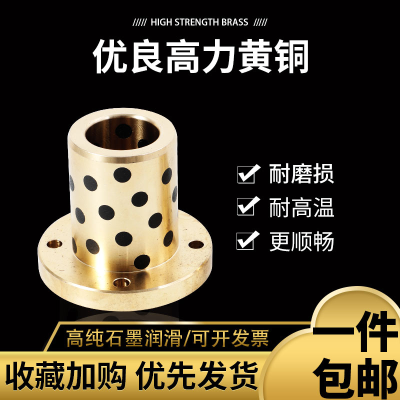 Graphite copper sleeve round flange self-lubricated wear resistant solid inlaid with goli brass customizable oil-free bushing