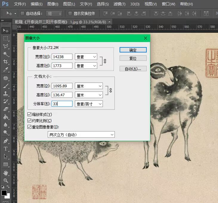 Qing Qianlong's "Kaitai Saying and Sanyang Kaitai Scroll" electronic picture decoration spray painting identification copy material