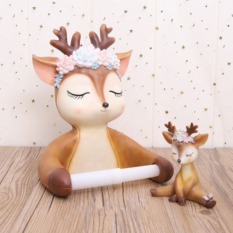 Deer baby roll paper tube Glue type small flower deer roll paper tube Glue small flower deer roll paper tube resin model