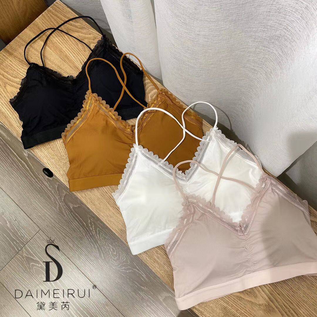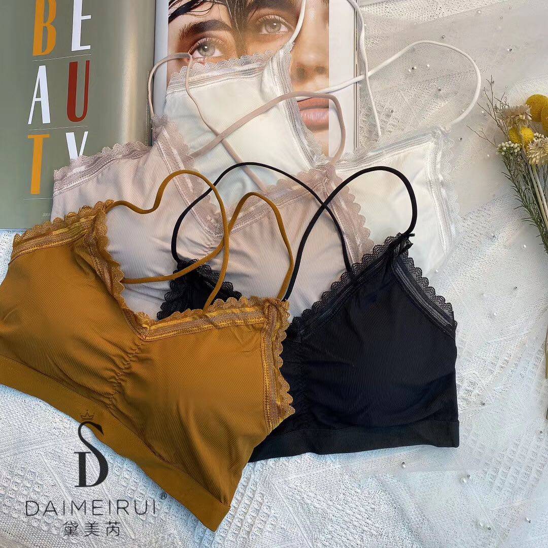 Dime Rey 1913 ice silk thick cushion lace lace back three with cross beauty back small harnesses back underwear woman