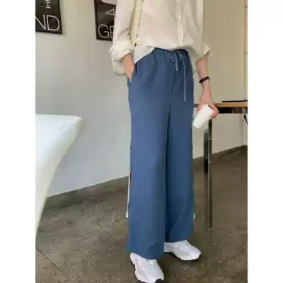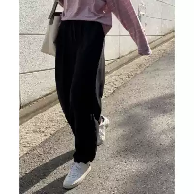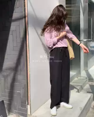 Korean Chic lazy fu Li single product gloss is good with temperament waist elastic casual pants