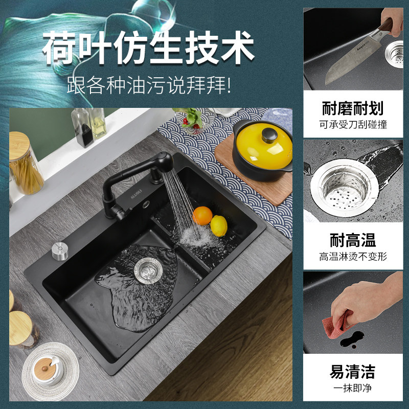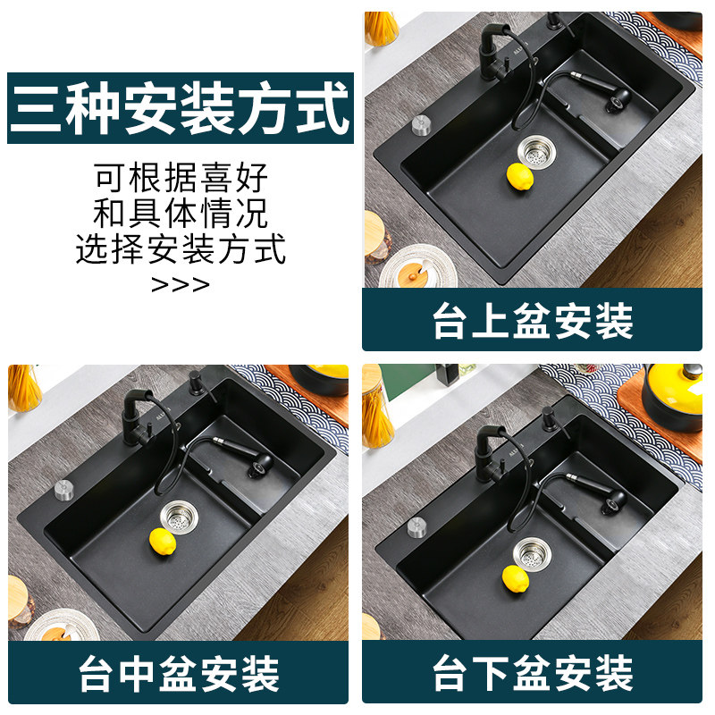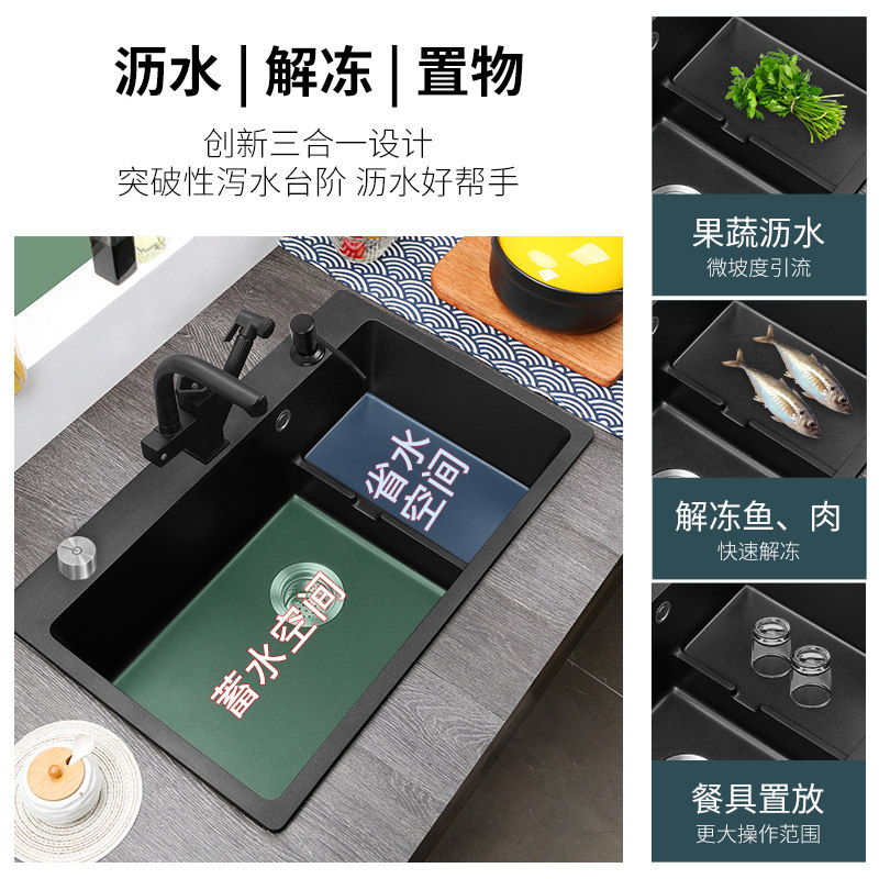 Allori Kitchen Quartz Stone Sink Stepped Wash Basin Single Sink Granite Dishwashing Pool Water Pool Black