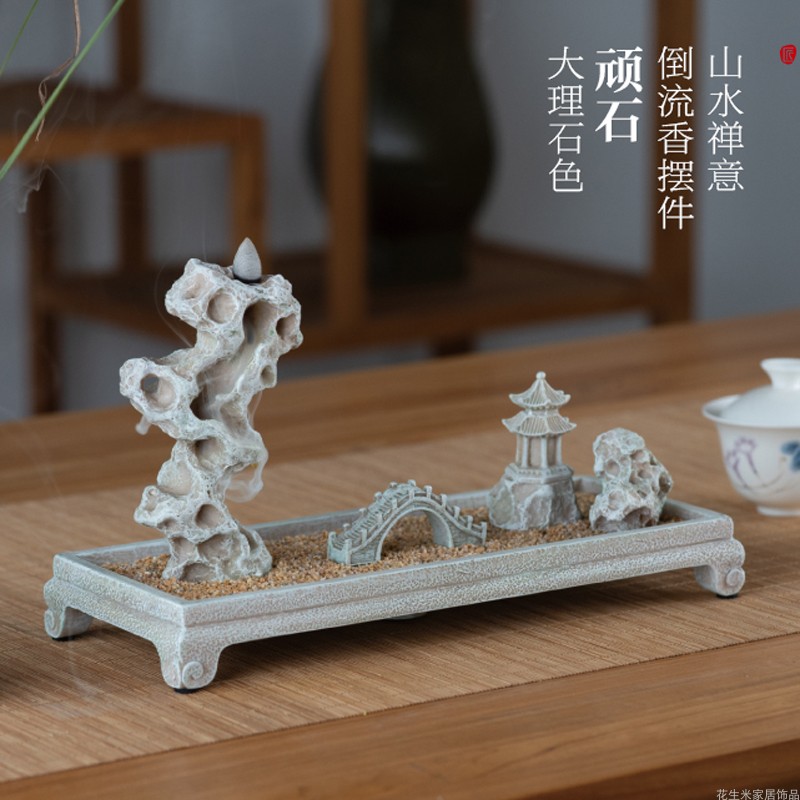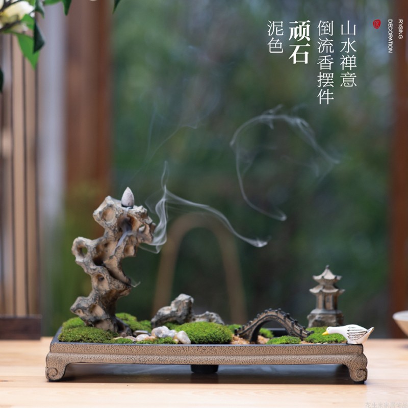Backflow incense burner art ornaments Chinese-style living room desktop tea ceremony Zen ornaments sandalwood incense mini incense stick