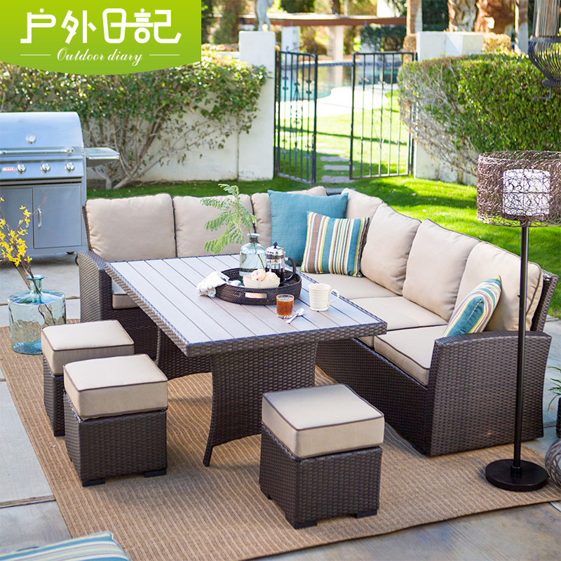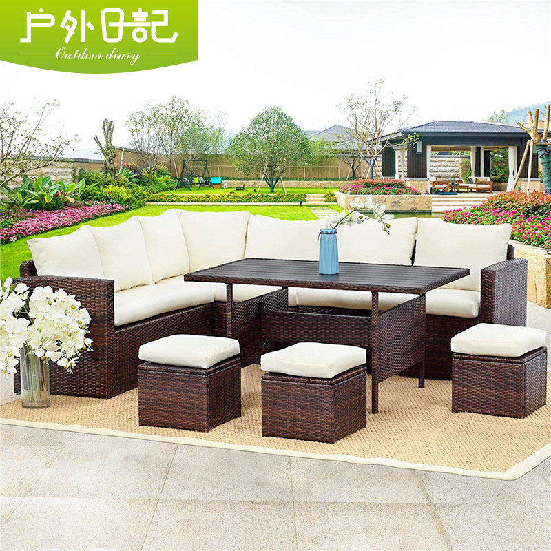 Outdoor sofa outdoor courtyard leisure rattan sofa terrace rattan chair corner sofa combination set imitation rattan furniture