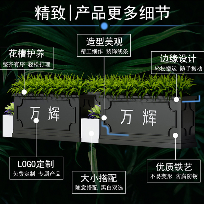 Outdoor Iron Art Flower Beds Outdoor Planting Flowers Metal Outswing Mobile Rectangular Fence Commercial Street Sample House Display Center