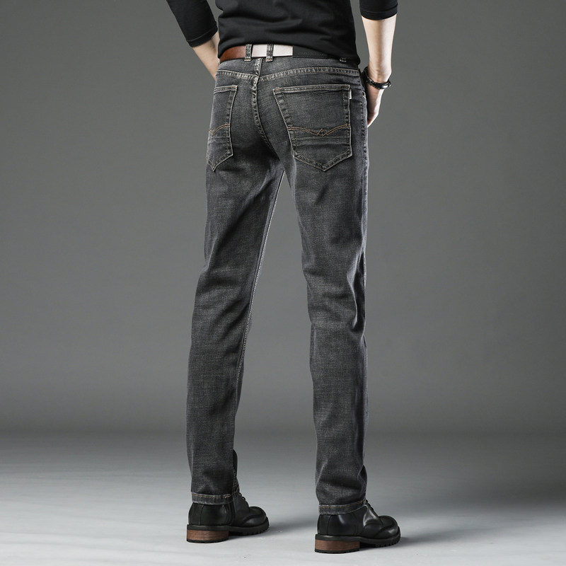 Hong Kong high-end jeans men's summer thin straight loose smoke gray casual pants Stretch wild men's pants