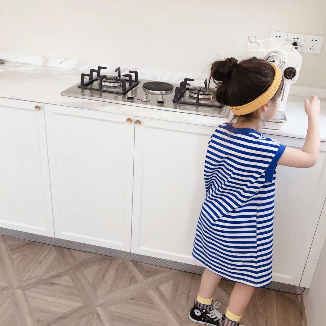 Korean version girls striped T-shirt skirt 2022 summer baby mid-length skirt loose navy style skirt