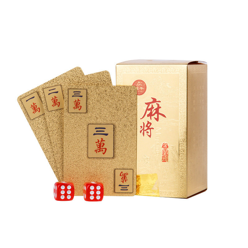 Golden Mahjong poker Home mini portable personality creative matte waterproof PVC plastic advanced Mahjong solitaire