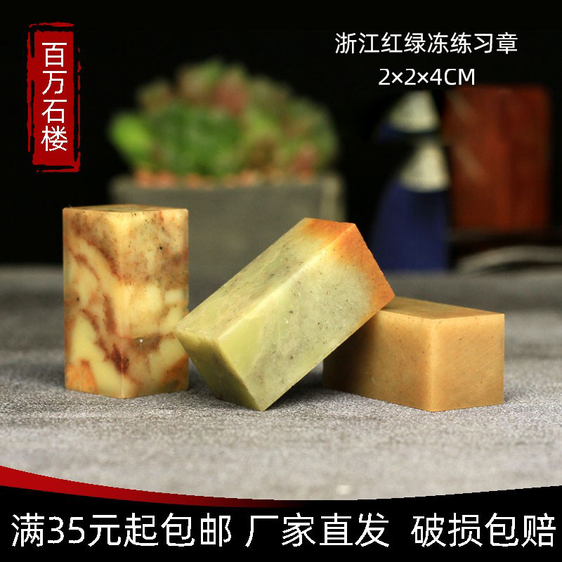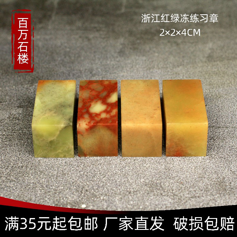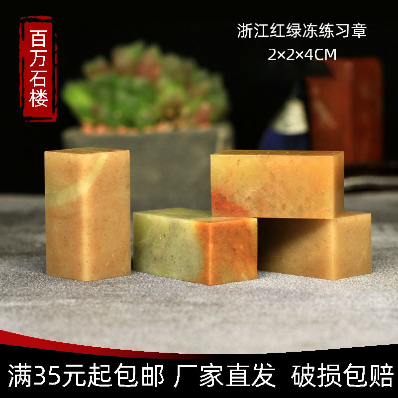 Shoushan Stone Zhejiang Red Green Freeze 2 * 2 * 2 * 4CM Indian Stone Practice Chapter Seal Engraving Seal Shoushan Beginners