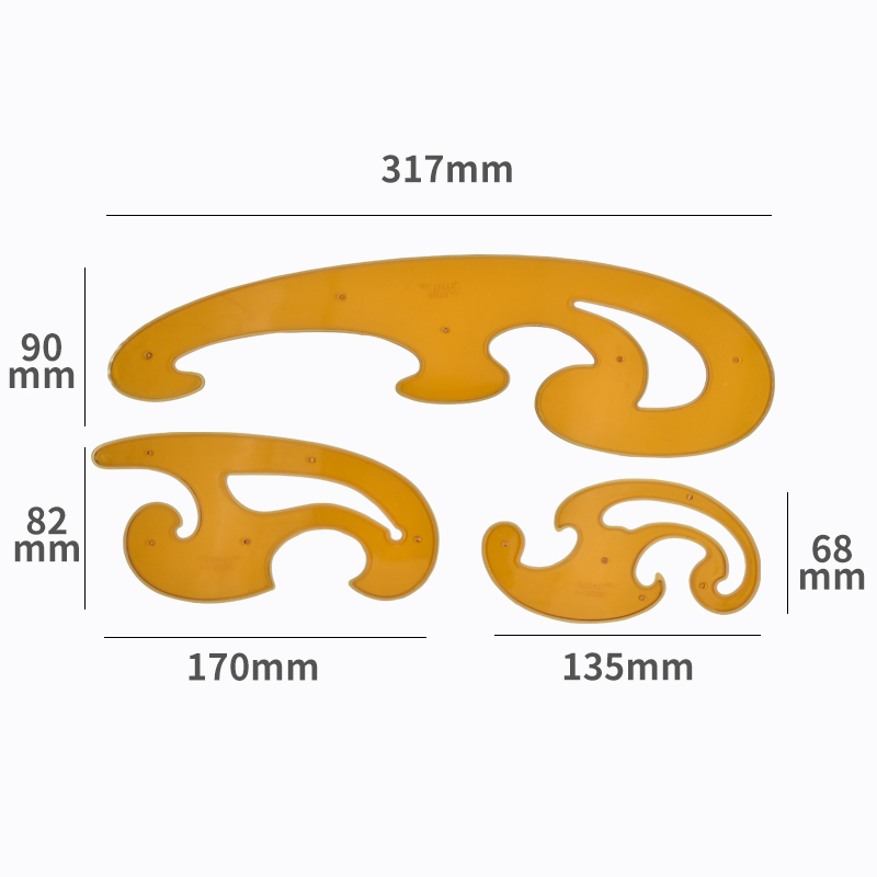 Qiancai Le 30cm multicolor logo large scale triangular scale 6 scales cloud ruler 3-piece set comic tool cloud-shaped ruler arc curve board drawing ruler