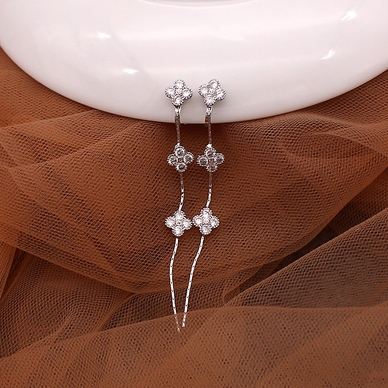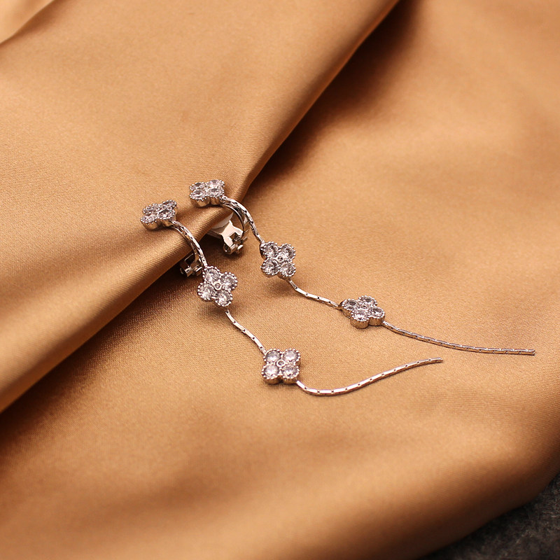 Korean long version of the four-leaf flower ear clip without ear hole earrings female clip-type fake ear acupuncture can be adjusted, painless and hypoallergenic