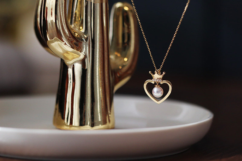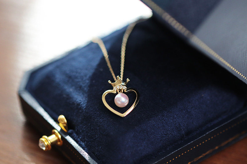 Texture Little Peach Hearts Japanese Polar Light Akoya Natural Seawater Pearl 18K Gold Diamond Crown Loving Pendant