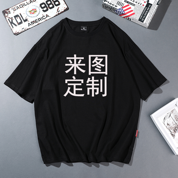 Men's and women's new trend cotton five-point short-sleeved T-shirt loose solid color casual top photo studio work clothes custom LOG