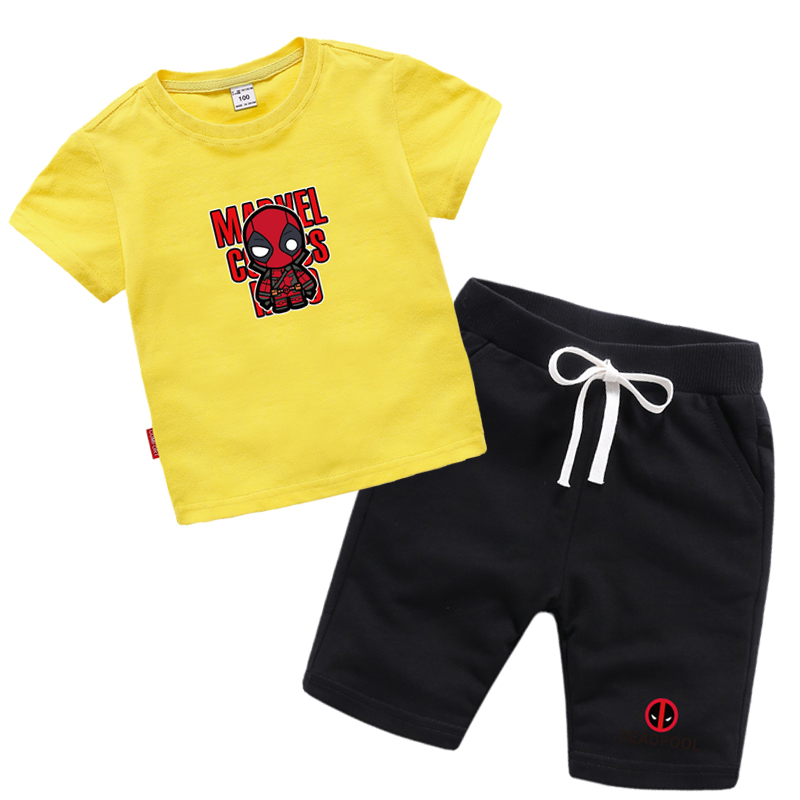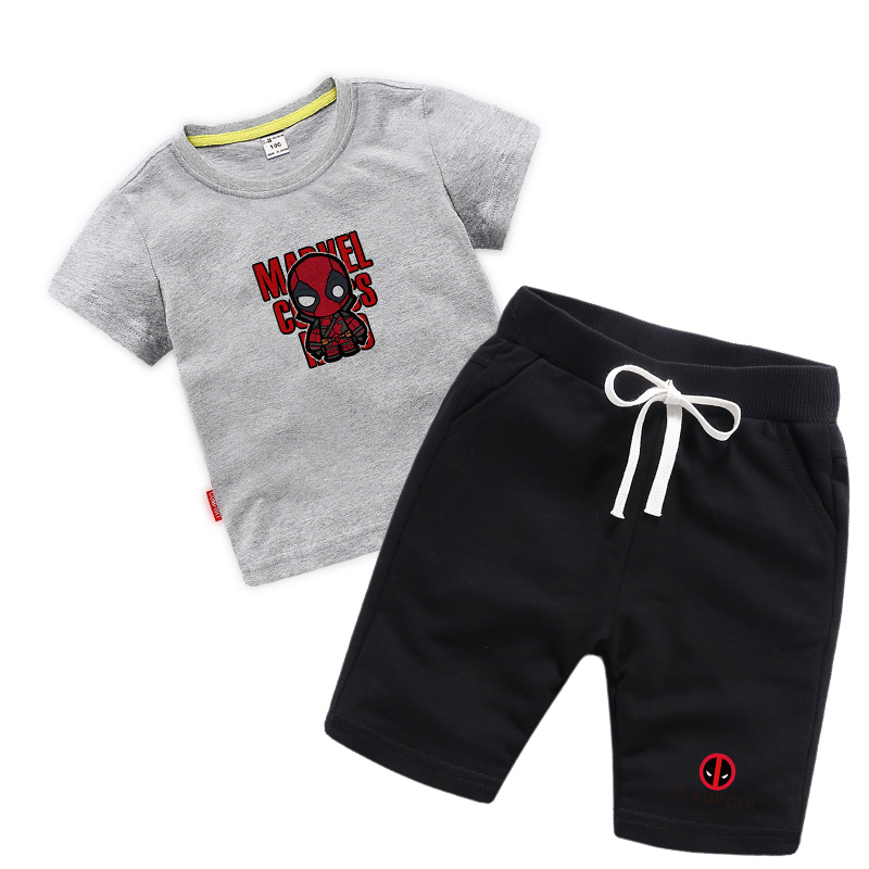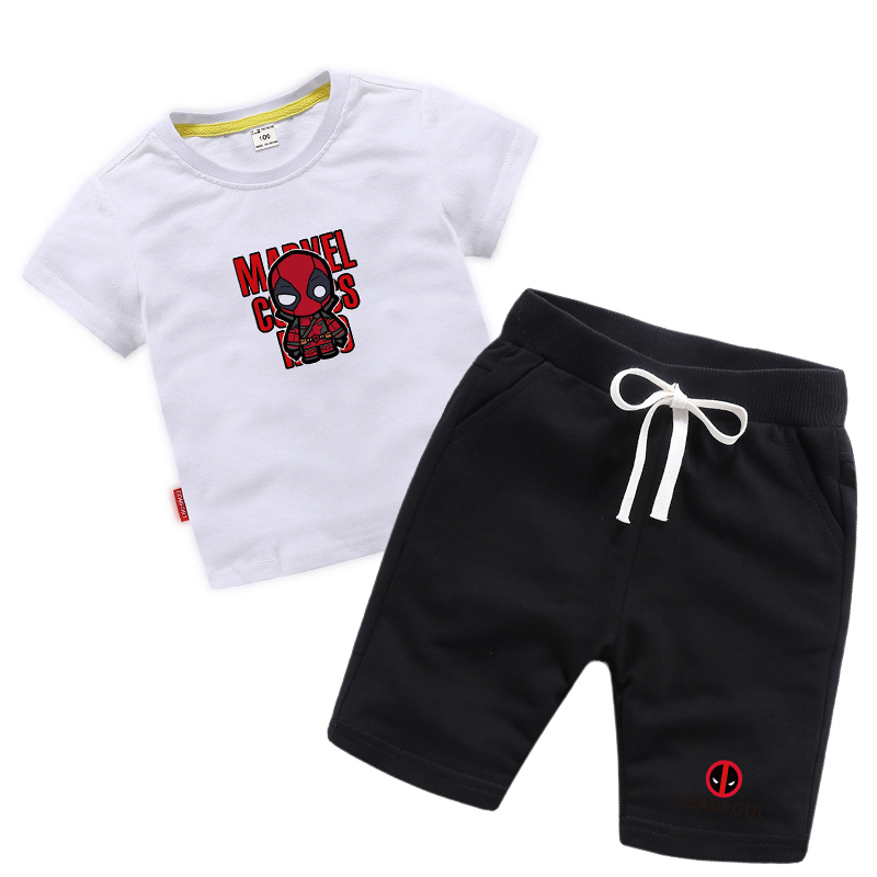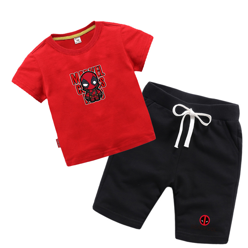 Boys Summer Suit 2020 Summer Children's Handsome Western-style Cotton Boys Children's Clothing Middle Child Deadpool T-Shirt Suit
