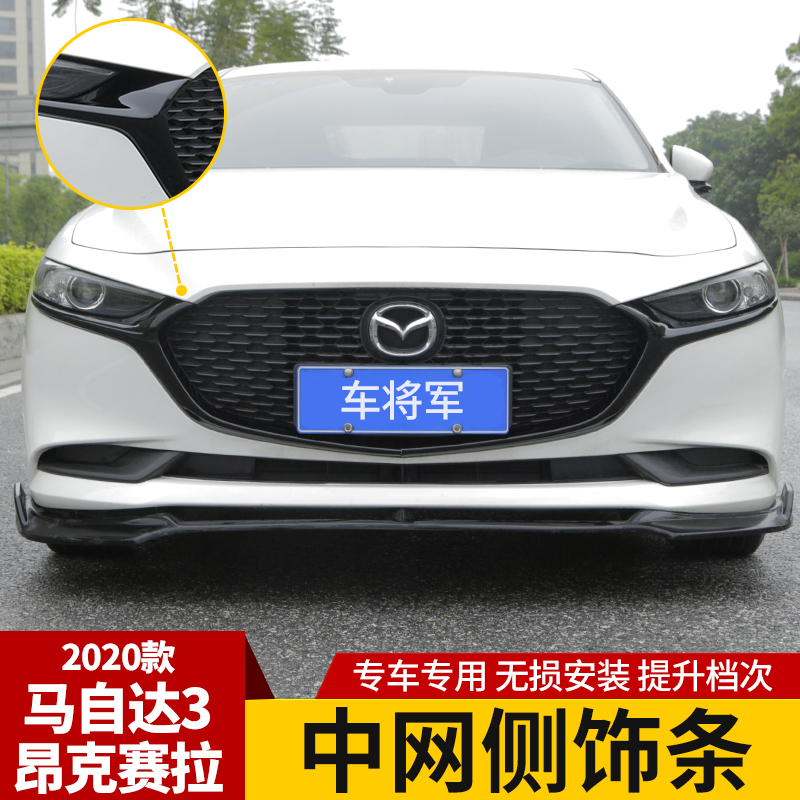 Suitable for 20-21 next-generation Mazda3 Angksela front middle net bright strip modified bright black decorative frame