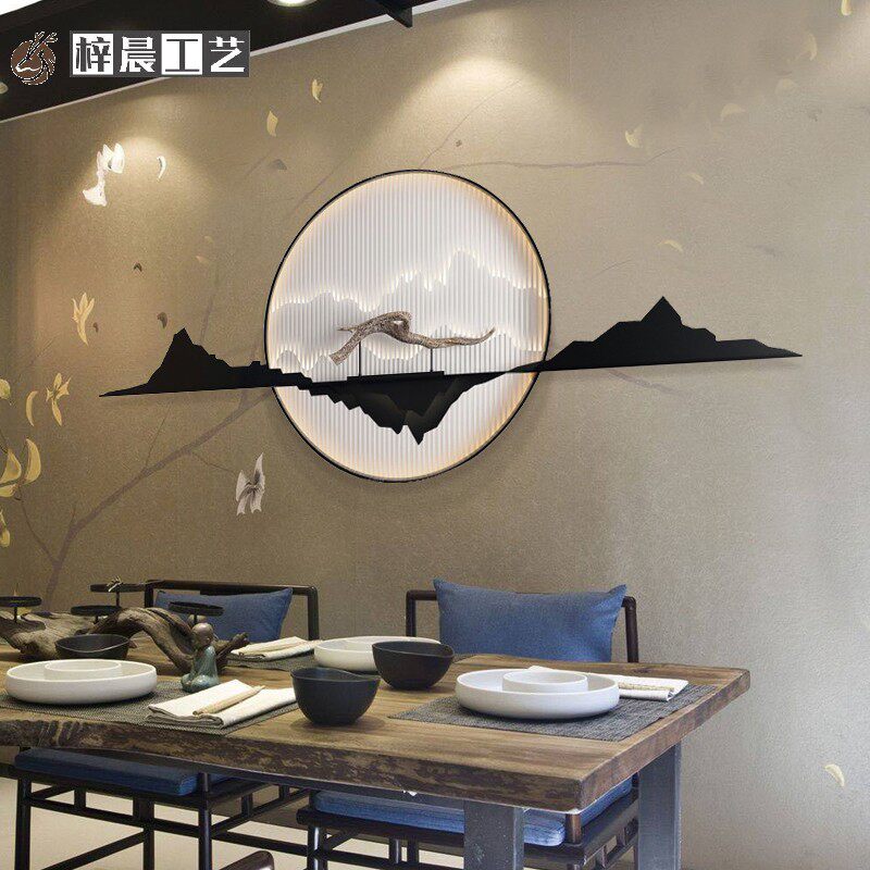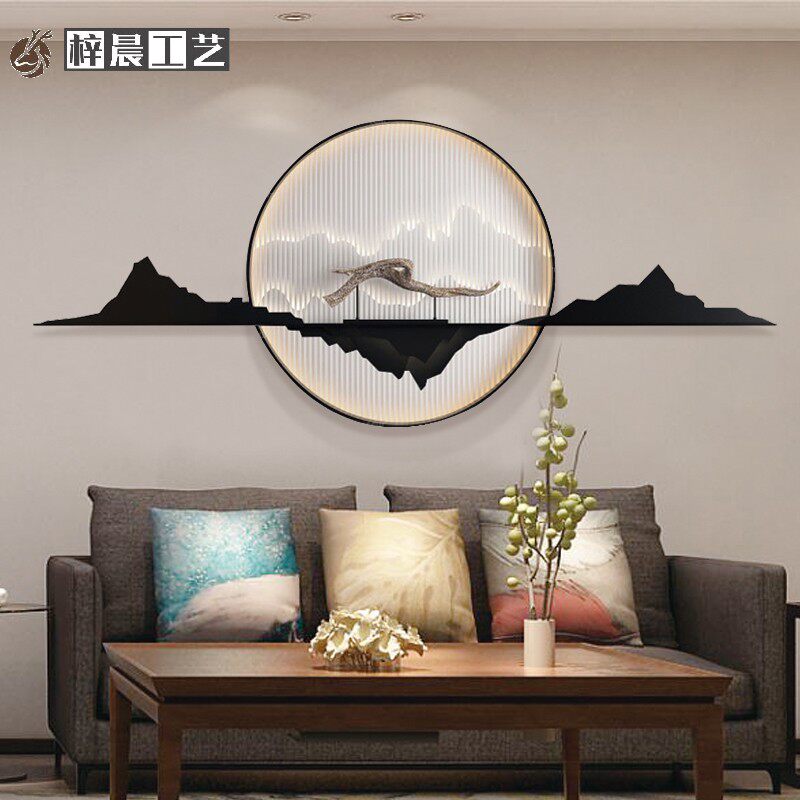 New Chinese style three-dimensional iron metal wall decoration living room sofa background wall decoration porch aisle light luxury wall hanging pendant