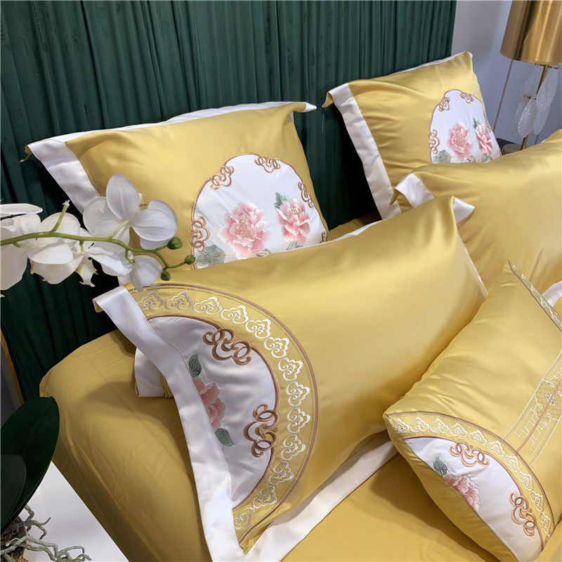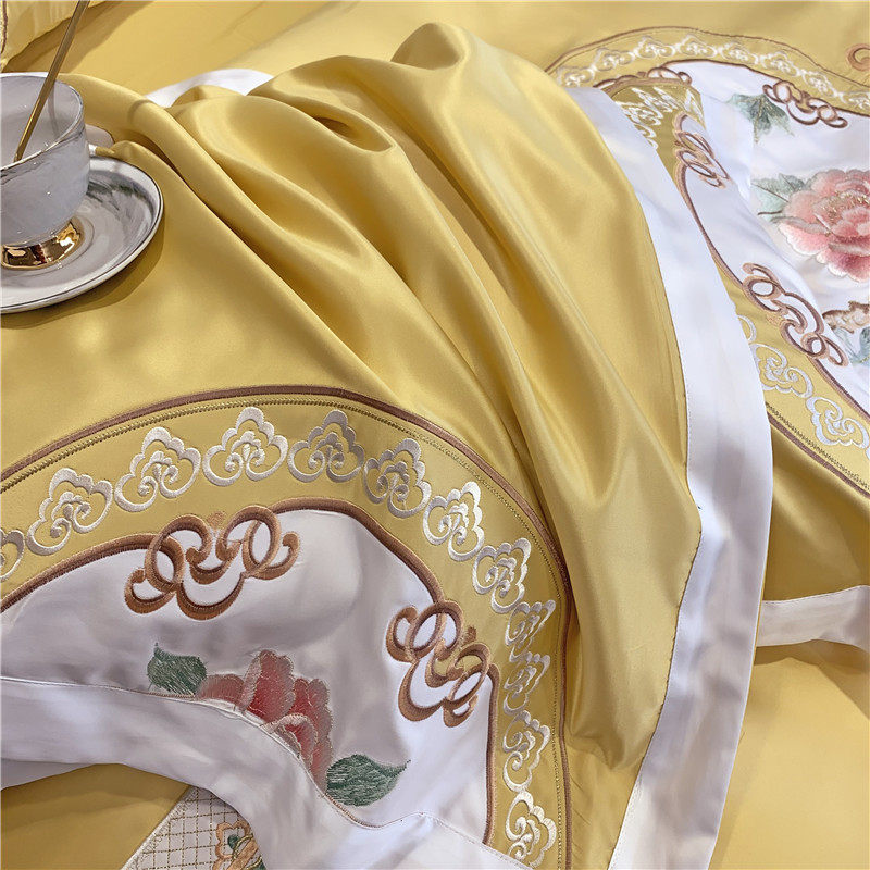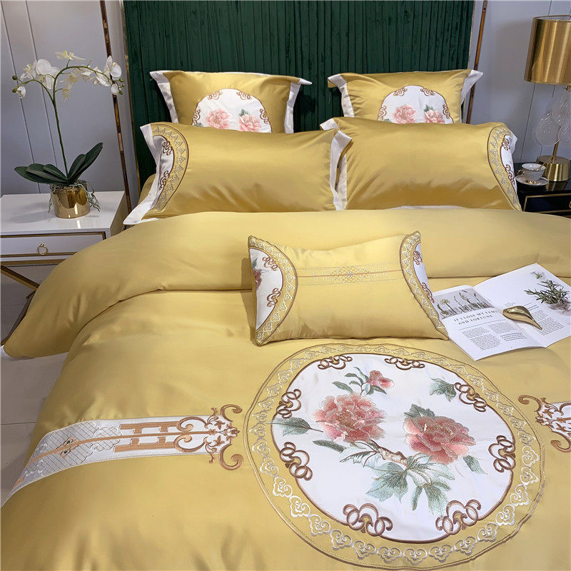 Chinese goon satin embroidery full cotton four sets of Chinese wind pure cotton linen quilt cover national wind ice silk new bed supplies-Taobao