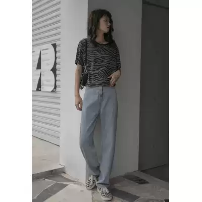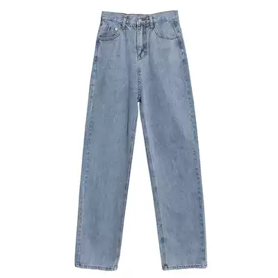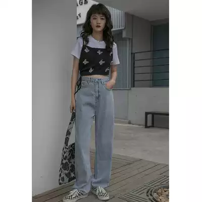 Back strappy high-waisted jeans women loose thin mop the floor wide legs draping old man straight tube Hyuna pants tide