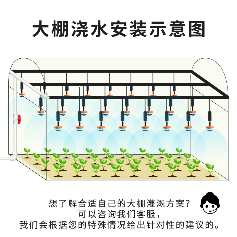 Greenhouse inverted hanging atomization nozzle suspension spray suit watering watering and watering with wet spray irrigation system breeding to cool water