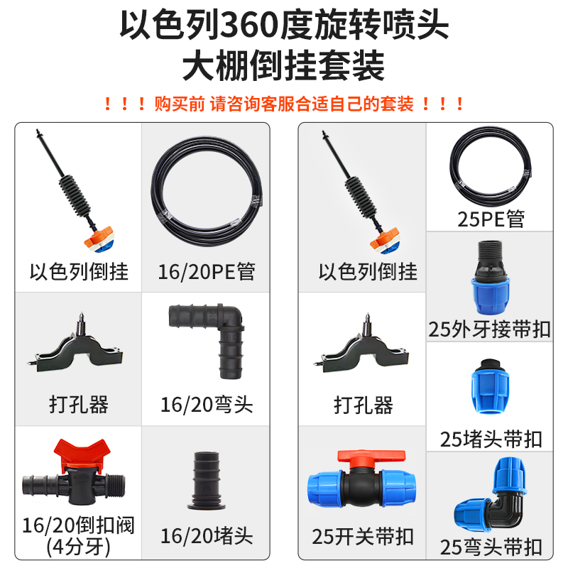 16PE pipe 10 m 5 spray head 20PE pipe 20 m 10 spray head 20PE pipe 30 m 15 spray head 20PE pipe 40 m 20 spray head 20PE pipe 60 m 30 spray head 2