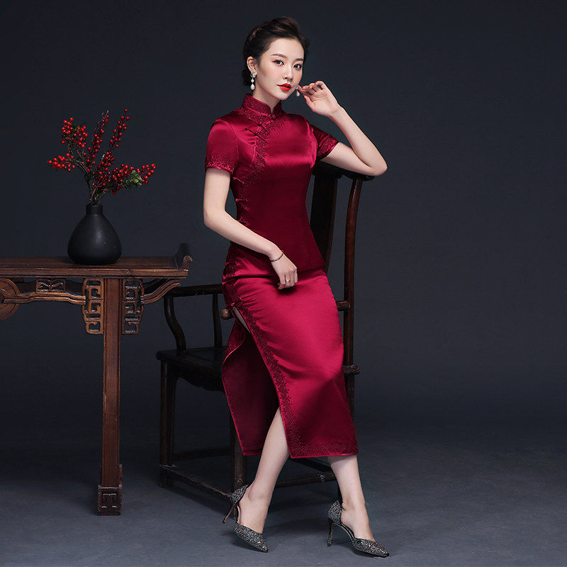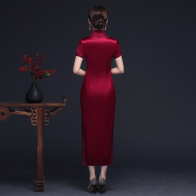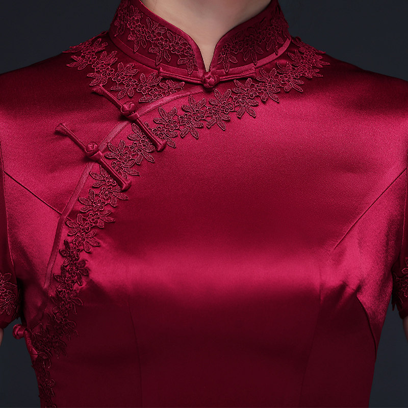 Real Silk Mother Dress Wedding Banquet Short Sleeve Retro Improvement Qipao Dress Noble Mulberry Silk Joy Mother-in-law Wedding Suit Summer