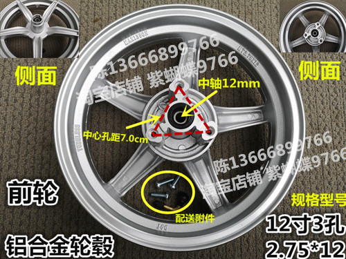 Battle three generations four generations BWS Maverick N1S front wheel aluminum alloy wheels aluminum ring electric motorcycle modification 12 inch 3 holes