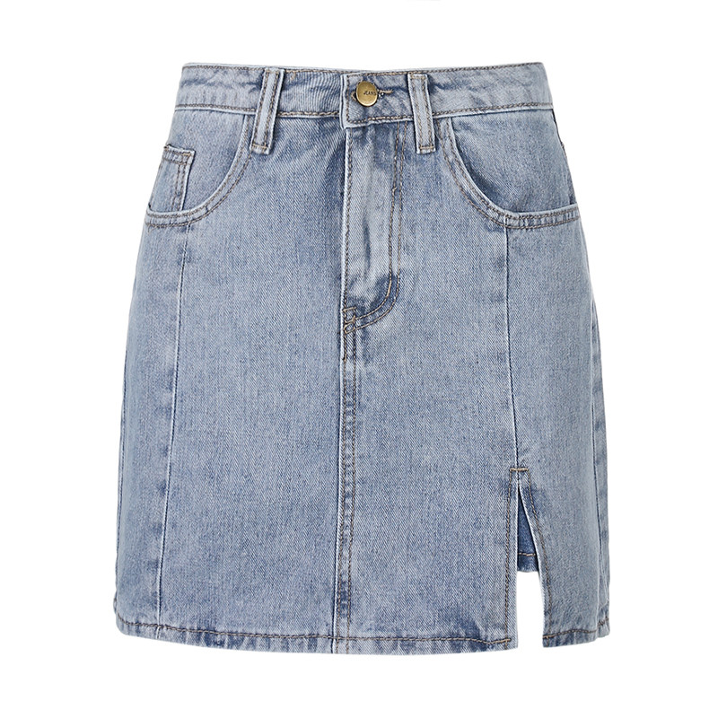 Design Sensation Fork High Waist Display Slim Sexy Anti Walking Light Denim Skirt Woman A Character Dress Casual 100 lap up short skirt summer