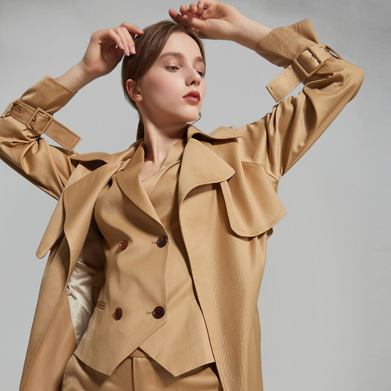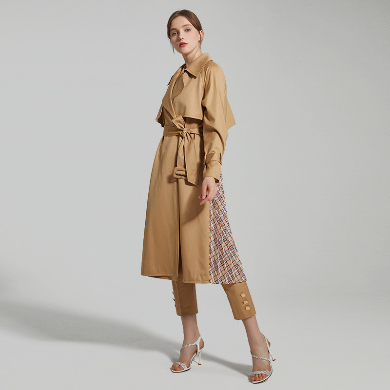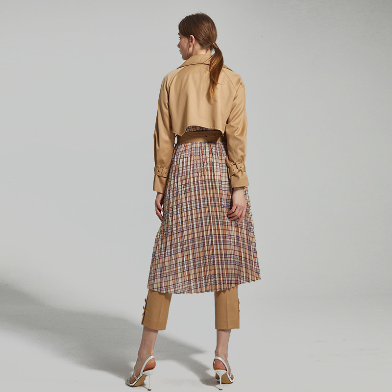 LadyS Elite milk tea brown back 100 pleats spliced wool material OL Style in long version long sleeve windsuit woman dress