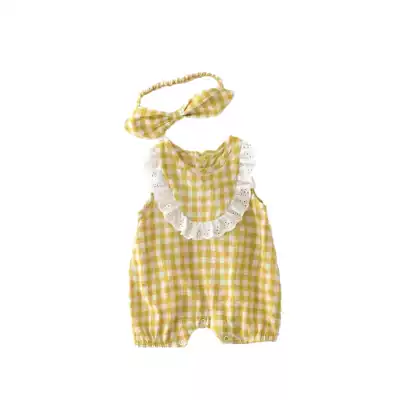 SonnyGirl summer new baby Plaid lace jumpsuit