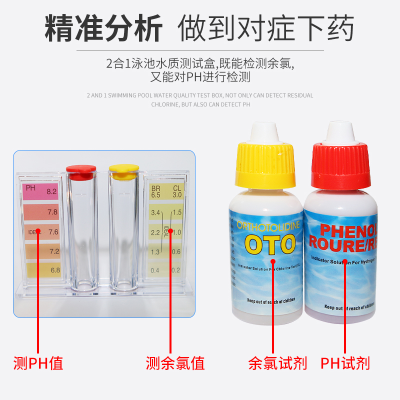 Swimming pool water quality detection and analysis box water test box DPD residual chlorine reagent PH value test box OTO acid-base supplement