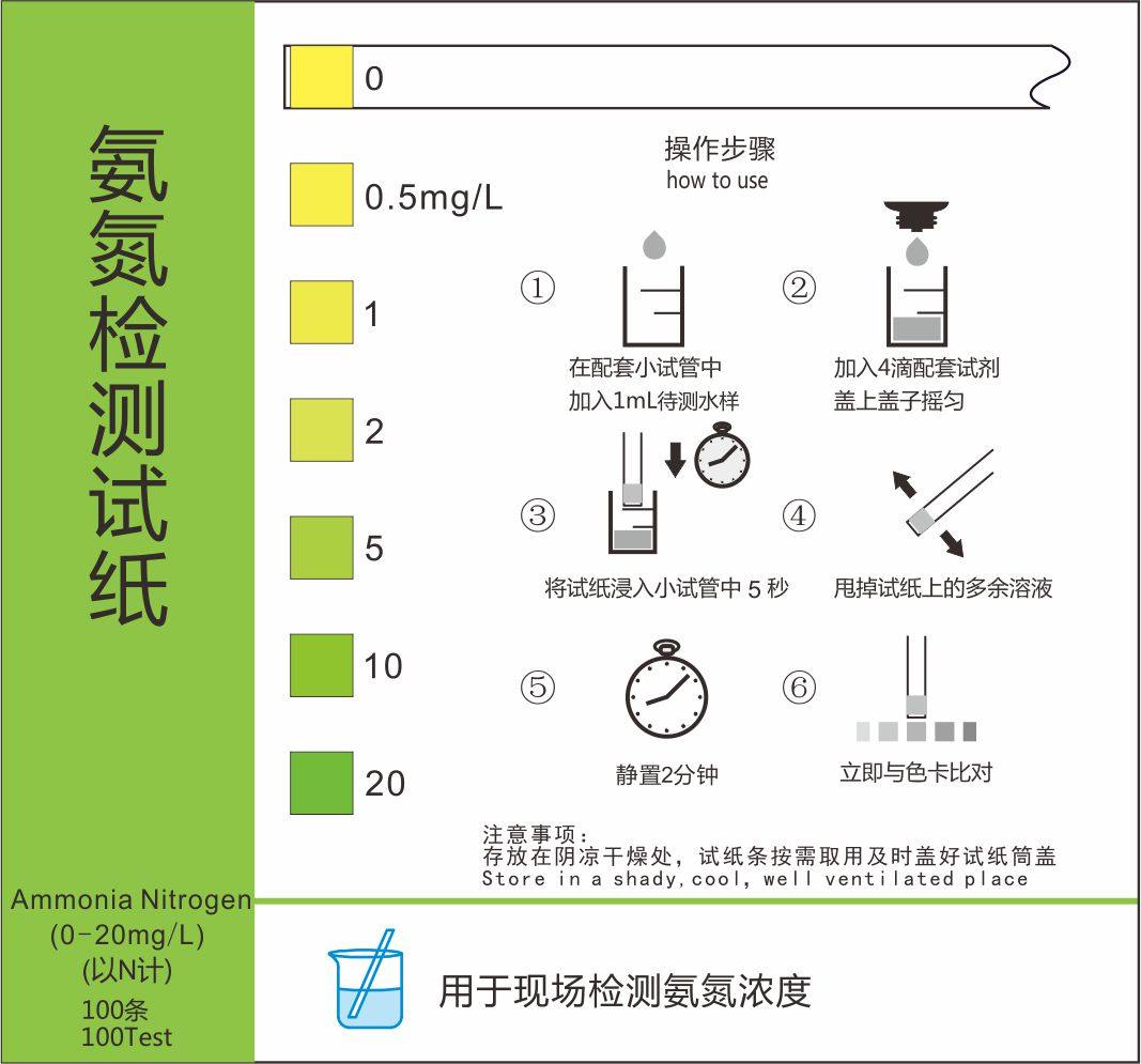 Ammonia nitrogen rapid test paper 0 - 20 ppm for domestic industrial wastewater sewage NH4 monitoring Shifenfeng