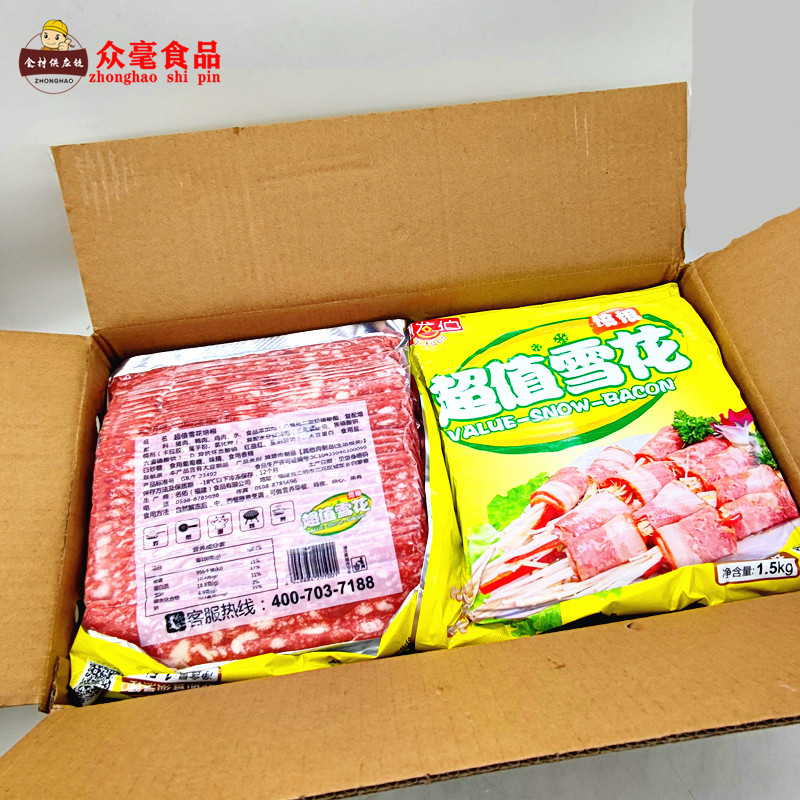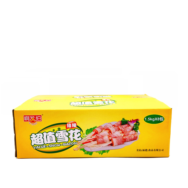 Mingyou Afabo Snowflake Bacon 1.5kg Meat Slice Breakfast Hot Pot BBQ Meat Scratch Cake Raw Material Semi-finished 8 Packs