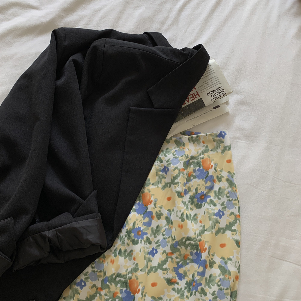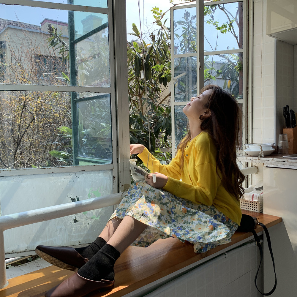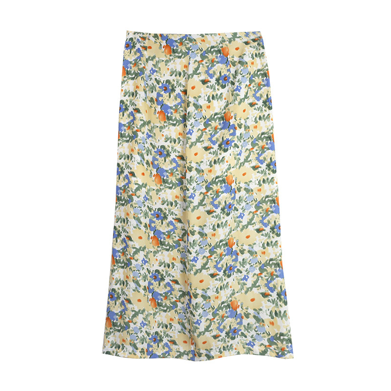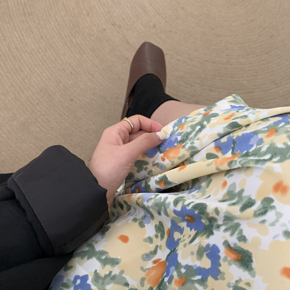 The smallest sea Korean version Yellow high waist new display slim temperament crushed half body dress woman Spring and autumn medium long version of skirt