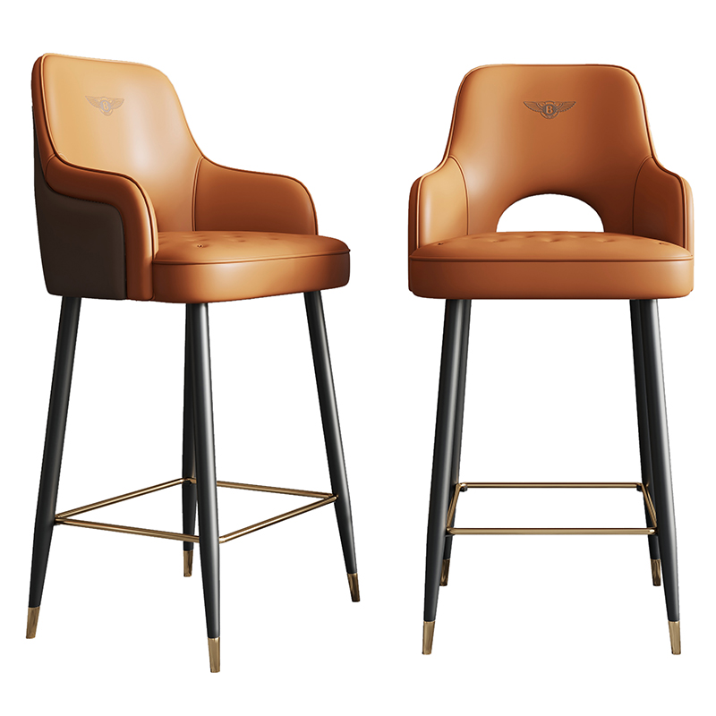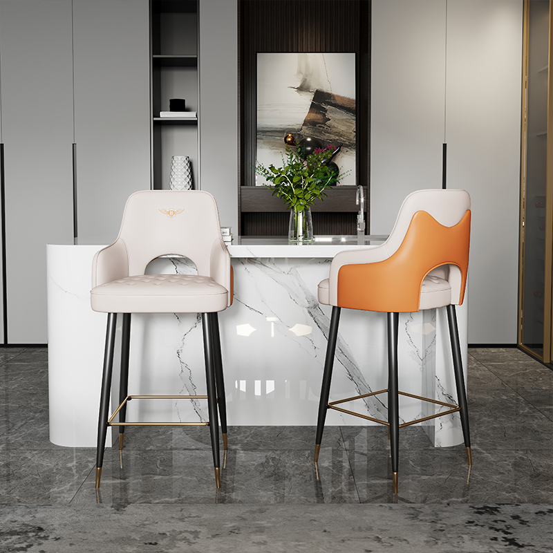 Nordic bar chair light luxury modern simple high foot chair Bentley bar chair wrought iron stool backrest stainless steel