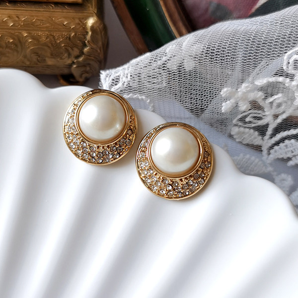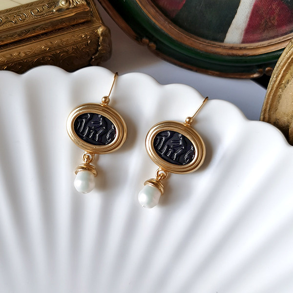 Vintag overseas custom retro ins Egyptian style net red earrings water drop pearls Europe and the United States all-match ear pin ear clips
