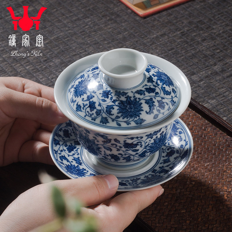 Bell Family Kiln Cover Bowl single Jingdezhen Ceramic hand painted green flower Chai Kiln Firewood Kiln Point of Tangle Branches Tea Cup Tea Cup