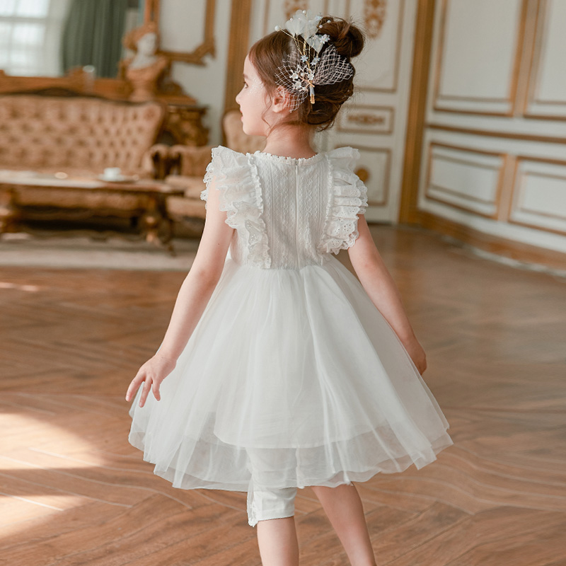 Girls princess dress summer 2021 new children's foreign summer white dress female baby skirt puff yarn