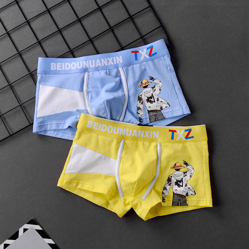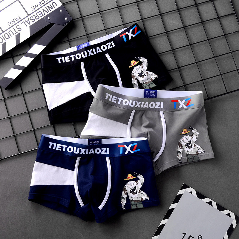 3 Trends Men's Underwear Men's Pure Cotton Flat Corner Trousers Summer Youth Personality Boy Pants Head Breathable Shorts
