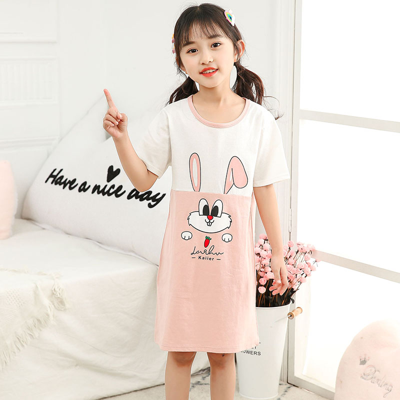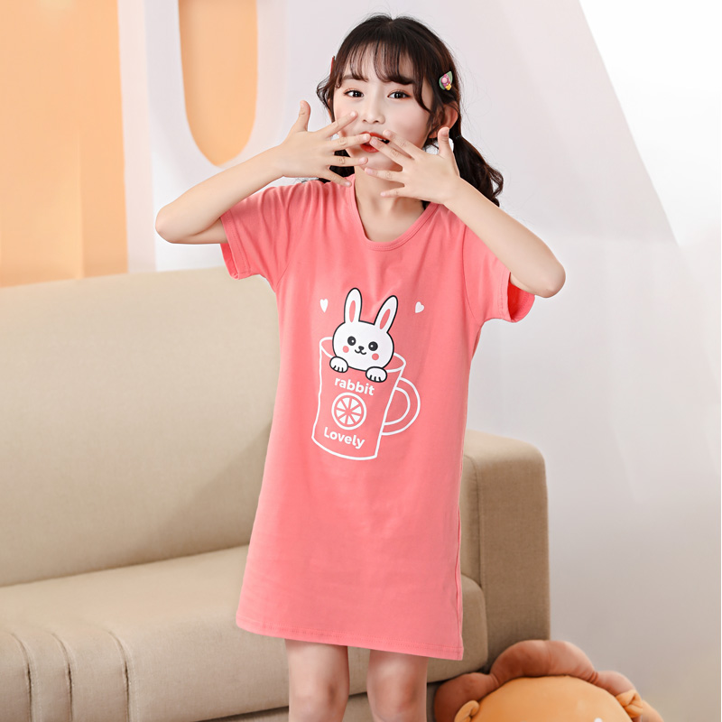 Girls' nightgown thin children's nightgown women's summer pure cotton short-sleeved parent-child mother-daughter home clothes medium and large children's skirt