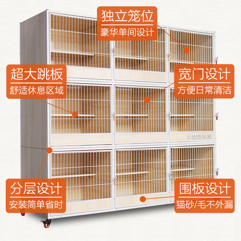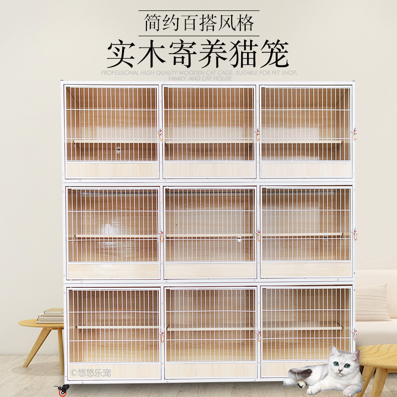 Luxury Solid Wood Cat Foster Cage Triple Cat House Cat Villa Big Cat Cage Pet Store Display Case for lighting lamps