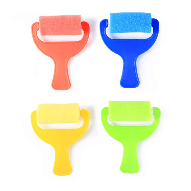 Sponge painting short handle wide roller 4 sets of children early teaching graffiti sponge tool kindergarten graffiti stamp