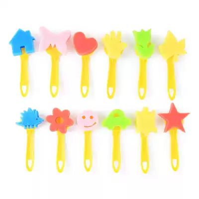 Children's painting graffiti handle sponge 12-piece printing set Children's diy handmade painting tool Sponge topography