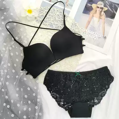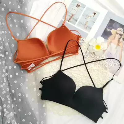 Back cross beauty back bra gathered small bra black underwear female thickened front buckle thin shoulder strap summer 2020 new