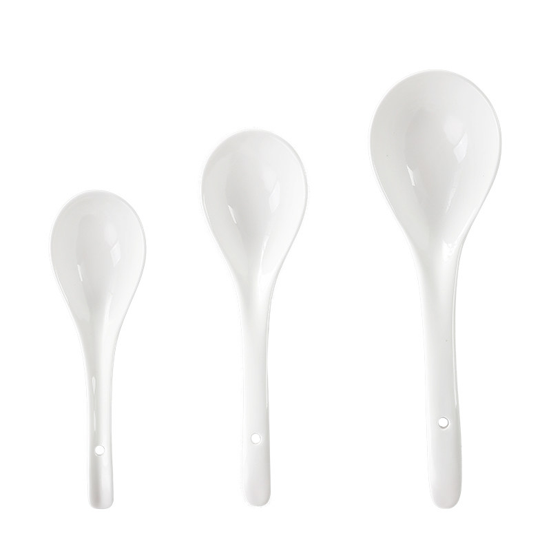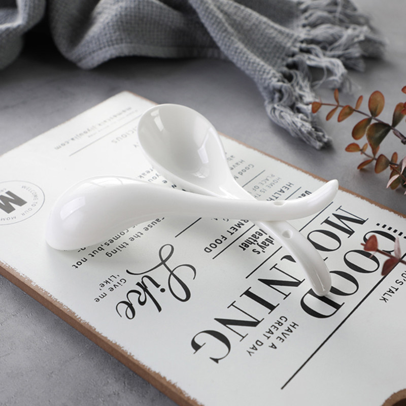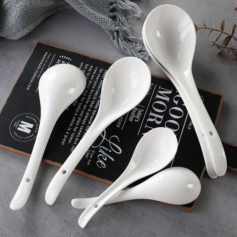 Home high-quality large pure white ceramic soup spoon Japanese-style soup long-handled spoon hotel big spoon dining room porridge spoon