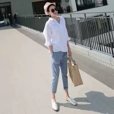 Pregnant women pants spring and summer thin outside wear ankle-length pants summer loose spring and autumn leisure cotton pants fashion tide mom summer clothes