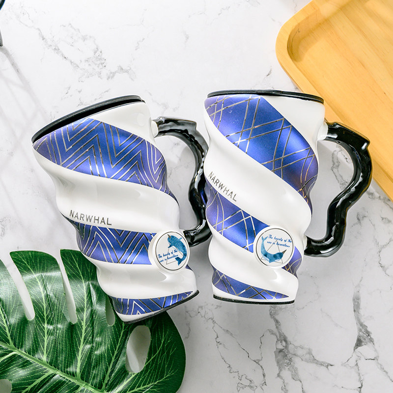 Becar Plume Creativity Large Capacity Mark Cup Office Ceramic Coffee Cup Sub with lid spoon female students Home water glass