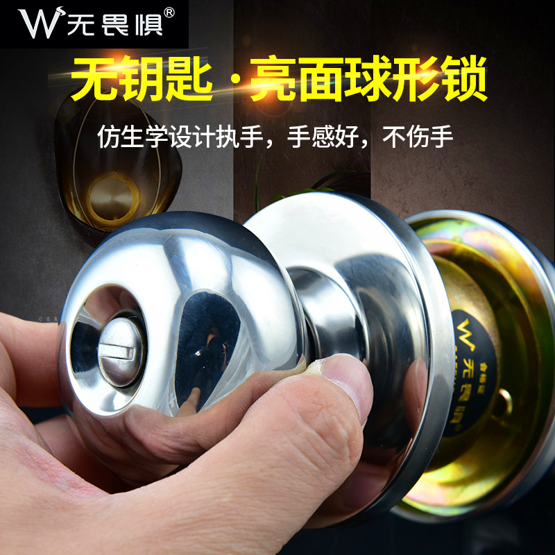 Fearless keyless ball lock Stainless steel universal ball lock Round lock Indoor toilet Bathroom door lock