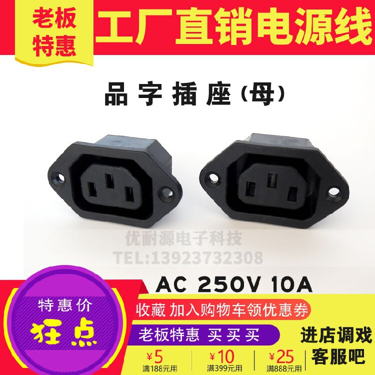 Power socket Host shell device power cord socket Three-hole three-inserts word tail host shell male head AC250V